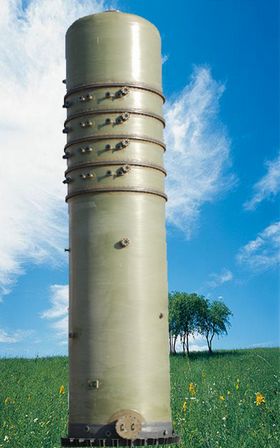 氯堿工業(yè)是電化學(xué)工業(yè)的一個重要組成部分,它利用電解食鹽水溶液的方法生產(chǎn)氯氣、氫氧化鈉(俗稱燒堿)和氫氣。這些產(chǎn)品在國民經(jīng)濟中的許多部門都有廣泛的用途。在電解食鹽的工藝過程中,需要專門的設(shè)備來處理氣體或液體,我公司生產(chǎn)本工藝中的玻璃鋼塔器及儲罐儲槽產(chǎn)品,如氯氣洗滌塔、氯氣干燥塔、泡罩塔、鹽酸吸收塔、各種儲罐、水封等。因本系統(tǒng)中易含鈣鎂離子,因此在制作玻璃鋼容器時不能采用一般的玻璃纖維增強材料,我公司針對本產(chǎn)品的特殊性,在本行業(yè)塔器、儲槽制作中進行特殊選材,保證產(chǎn)品質(zhì)量。