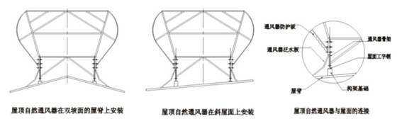 屋頂通風(fēng)器安裝在用戶提供的基礎(chǔ)構(gòu)架上,構(gòu)架面應(yīng)做成水平?梢詥闻挪贾,也可雙排布置,可布置在雙坡屋面的屋脊處,也可布置在斜屋面上。屋頂通風(fēng)器安裝完畢后,應(yīng)作防水處理。
